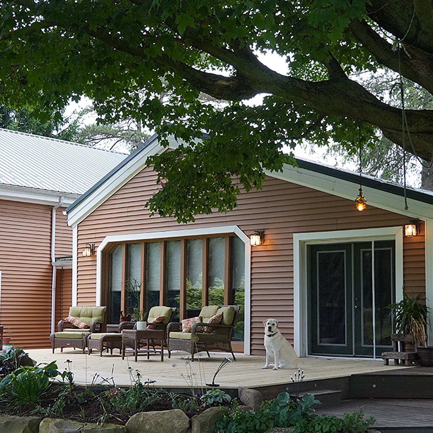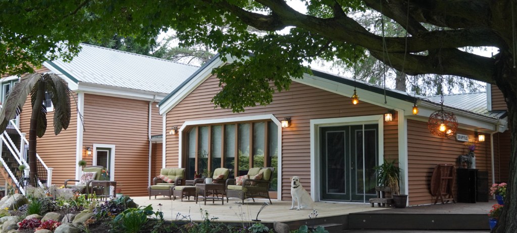 Our farmhouse rooms are for those who like a relaxed, rustic experience with a B&B vibe. Located on the 2nd floor in our 1830s farmhouse, the Sunshine and Sky rooms feature queen size beds, an upstairs bathroom and a large sitting area with tv, refrigerator, microwave and necessities for unwinding. Access to the upstairs by staircase off the main dining/kitchen area. Please note: your reservation of one bedroom or two bedroom will be the only reservation on the property during your stay.