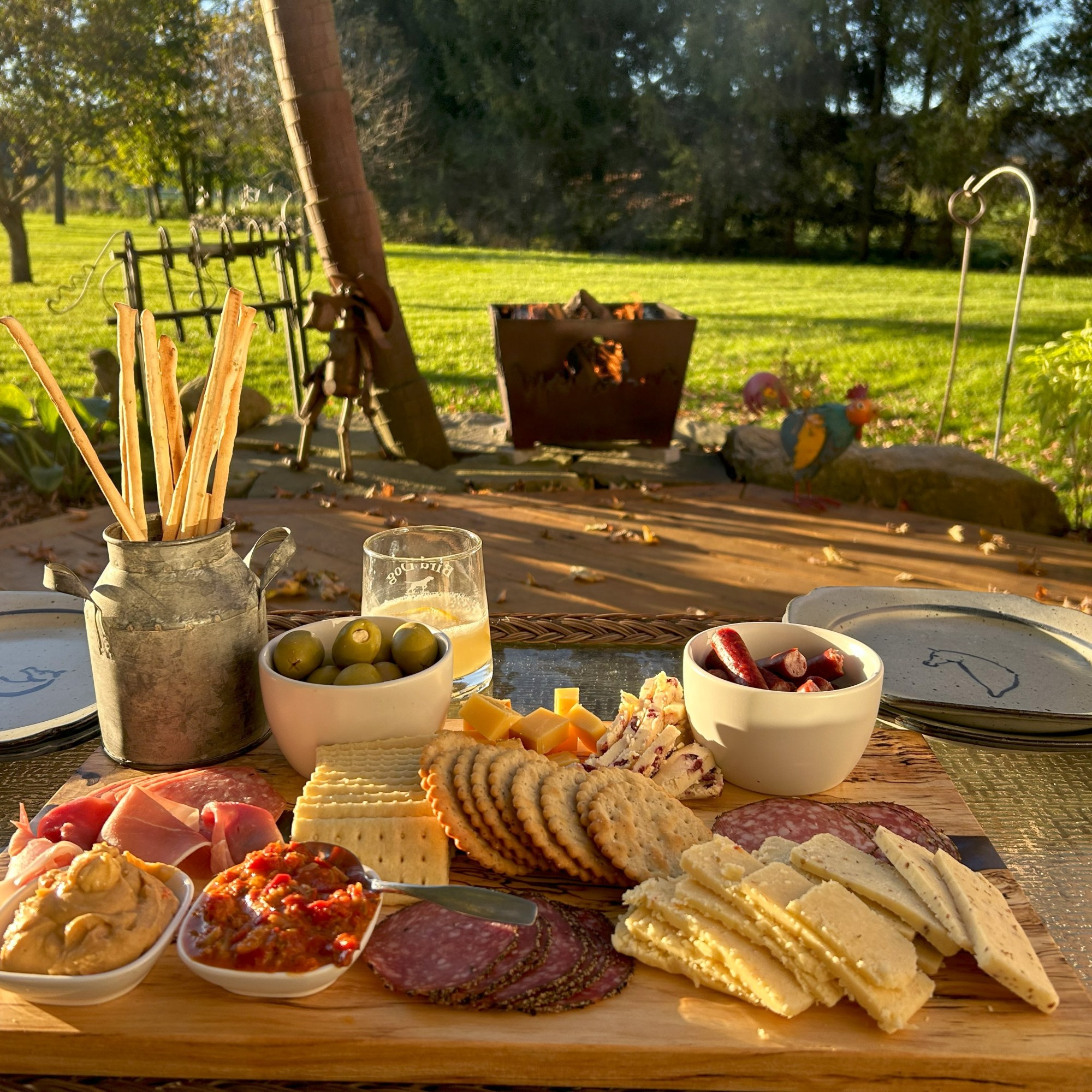 Let us create a masterpiece mini buffet of cheeses, cured meats, breadsticks, olives and nuts for your after hours wind-down time. It is the perfect compliment to your stay on the farm!
